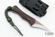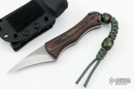 This Cock Spur by John Gray features a hawkbill blade with nice buff line on the blade edge, .164" blade stock and 1.192" blade depth, full tang construction with micarta scales. Comes with a kydex sheath with Velcro loop. Excellent Condition.