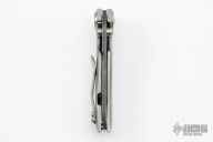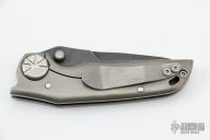 This G3 Thuck by John Gray Knives features an acid tumbled blade with dual thumb studs. The handle is an orange peel titanium frame with matching tip up clip. Nice detent, lockup and blade seating. Excellent Condtion.