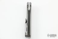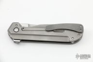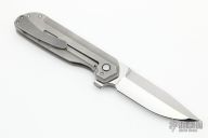 This Parabola Flipper by Jason Stout features a tumble satin finished blade with notched thumb rest and flipper. The handle is comprised of milled titanium over titanium stand offs. Matching titanium clip is positioned for tip up carry. Great blade seating, detent and lock up. Includes padded case. Excellent condition.