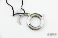 This MK-14 Vicious Circle is a Grant and Gavin Hawk design by Mantis Knives. It is circular pendant that deploys a curved blade when detached from the lanyard. Satin finish with abalone inlays. Includes original box and paperwork. Excellent condition.