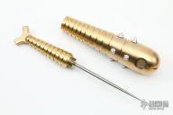 Each piece weighs about 1kg, 25.5cm in length. Body is machined out of solid brass. The inlays, small spikes on the body and hidden spike are all stainless steel. F**H comes with a wooden (black walnut) display stand.