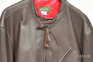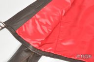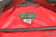 The TAD Gear Custom Street Fighter Cafe-Racer Motorcycle Jacket is made from select 3.5oz competition weight dark brown cowhide leather. Blood red heavy weight sateen liner. Has an externally accessed, goat skin lined, zippered hideaway pocket for the Custom Strider SLCC Street Fighter Model. Jacket is in new condition. Jacket is size 48. Tag reads "TAD Gear Green Label"