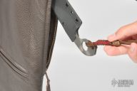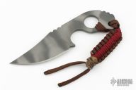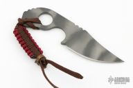 This TAD-Strider-Starlingear Trifecta of Bad Assness comes with a TAD Gear custom Street Fighter Cafe-Racer Motorcycle Jacket, Custom Strider SLCC Street Fighter knife, and a Starlingear bronze Steam Punk Skull bead. The Custom Strider SLCC Street Fighter knife features a tiger striped blade and handle with notched thumbrest, .193" blade stock and 1.338" blade depth, integral construction. Comes with a kydex sheath that snaps into an externally accessed, goat skin lined, zippered hideaway pocket in the Street Fighter leather jacket. The blade has some light sheath marks, otherwise excellent condition. The Starlingear bronze Steam Punk bead is a one-off and is intended to be used as a zipper pull, exclusively produced for the Street Fighter Jacket with lanyard, comes in original TAD Gear packaging.