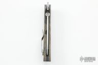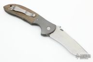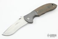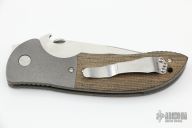 This custom Super Commander by Ernie Emerson features a hand-ground satin finish blade, dovetailed bead blast titanium bolsters and liners, and green micarta scales, black G-10 backspacer. Stainless steel clip. Wave feature. Has some scuffs, otherwise excellent condition.