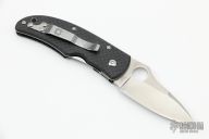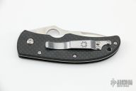 Great little linerlock designed by Michael Walker, produced by Spyderco. Satin blade and carbon fiber scales. Japan's version of the ultra-performance powderized steels dominating our knife industry today is ZDP-189. With 3-percent carbon and an epic 20-percent chromium, the hollow-ground blade becomes part of an elite fraternity of exotic blade steels just beginning to be fully utilized and appreciated by knife users. Tip up carry clip. Strong lockup; nice detent and seating. Discontinued model. Excellent condition.