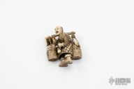 A finely hand carved Japanese mammoth ivory netsuke of a man carrying two baskets and his son, Extensive engraved enhancements.