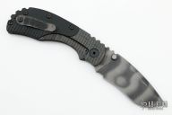 In 1988, he began making specialized knives for use by the military. This turned out to be fortunate turn of events, both for Mick and for the knife using world at large. Mick’s approach was to not get burdened by the weight of past designs. He started with a tabula rasa, a clean slate, informed only by his own experiences and knowledge of what a soldier needed in a knife. The knives he made didn’t look like the hunter-inspired knives seen in most PXs; instead they were almost brutish in their functionality: beefy, solid, and with unbreakable ¼” stock full tangs. These knives were the first indication of his innovative approach: in addition to their utilitarian design, the knives carried a subdued finish and subdued sheaths. No one carrying a Strider knife was going to be spotted because of sunlight glinting off of polished steel or a glossy leather sheath. Soldiers, policemen, and other men going into harm’s way couldn’t buy them fast enough. Mick sampled some good ideas, but made them great. For instance, he was not the first to wrap a knife handle with paracord, but he was the first to do it in a way that was tough enough for sustained infantry use. His knife line grew over the following years to include different varieties of fixed blades, all distinctive and many with specialized uses. But constant in all of them was a disregard for convention, and a desire to try new ideas. An example of this was the Ajax – it featured a very wide blade surface clearly designed to inflict damage. It drew on the weapons carried by Roman legionnaires, yet was modern and usable in the 21stCentury battlefield. Mick also worked on his technical skills, always striving to become better at the physical craft. At the 2002 Blade Show, a group of the best tactical knifemakers in the country decided to compete with each other to produce the most innovative and interesting fixed “battle blade” at the show. Mick’s entry, an incredible integral knife made out of ½” titanium stock with a zippered composite blade, gorgeous handles, and integral guard was the unanimous winner, and effectively retired the competition.