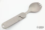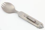 Titanium Folding Spork with clip by Tad Gear. Has a couple light scuffs, otherwise excellent condition.