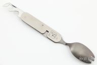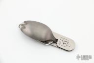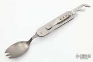 Titanium Folding Spork with clip and folding bottle/can opener by Tad Gear. Comes with original packaging, Excellent condition.
