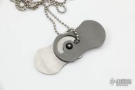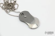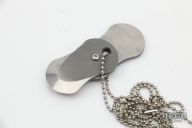 Titanium dog tag knife by Triple Aught Design. It features bead blasted titanium construction with a ball chain. Has some light scuffs, otherwise excellent condition. Pretty sure this is one of the prototypes for the TAD titanium dog tag knife.