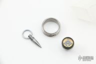 Titanium Rescue Ring from T.A.D. Gear with removeable spike. Includes split ring key ring to hold spike when not in use. Includes a compass that can fit on the same split ring holder. Size 11.5