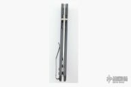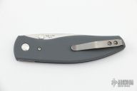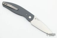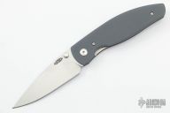 This Atom Linerlock by Three Rivers features a stone wash finished blade with dual thumbstuds. The handle has gray G-10 scales, titanium liners and tip up reversible clip. Nice detent, lockup and blade seating. Comes with original box, papers. Excellent condition.