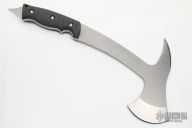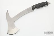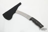 This Prototype Axe by Walter Brend is #06 and dated 06/14. Has a tumble finished blade with spike on the other end, .267" blade stock. The handle has carbon fiber scales and a lanyard hole, extended tang with skull crusher at butt of handle. Comes with kydex sheath. Excellent condition.