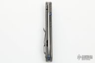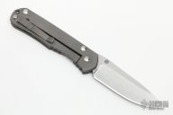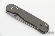 This large Regular Sebenza by Chris Reeve Knives features a tumble finish blade and bead blast titanium frame. Anodized titanium thumb stud and barrel spacer. Lanyard hole in pommel. Nice detent, lockup is all the way over and blade seating is centered. Comes with original box and papers. Excellent condition.