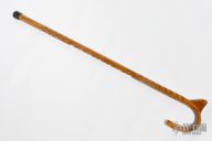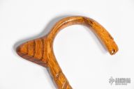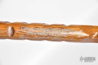 This Custom Fighting Cane by Cane Masters is made from hickory and has a carved eagle's head on the handle. This one comes with "All the bells and whistles" and is not one of their normal canes. Excellent condition. The cane reads "Custom made and hand crafted by Grand Master Mark Shuey", it is also hand signed under that "Grand Master Mark Shuey".