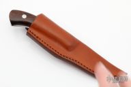 This Hunter by William Gordon Defreest features a mirror polished blade, .184" blade stock and 1.004" blade depth, full tapered tang construction. The handle has wood scales. Comes with a brown leather sheath and a padded zippered case. S/N 2516.  Excellent condition.
