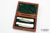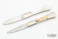 This pair lockback folders by Mel Pardue are both #002 and come in a custom wooden box.