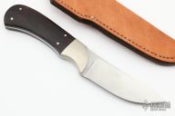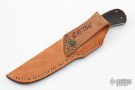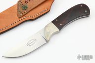 This Hunter by Ron Gaston features a hand rubbed satin finish blade with .158" stock 1.023" blade depth, full tapered tang construction. The handle has nickel silver bolsters, wood scales. Comes with a brown leather sheath.  S/N 154.   Excellent Condition.