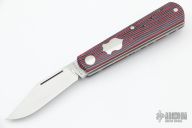 This slipjoint from Thys Meades features a hand rub satin finished blade with nail nick. The handle has micarta covers with stainless steel liners, spring and sheild. Has half-stop, flush in all positions. Comes with original box, COA dated September 2020.  Excellent Condition.