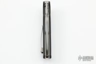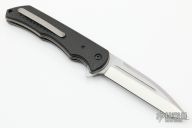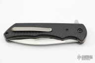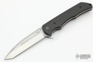 This collaboration flipper between Bob Terzuola and Brian Fellhoelter features a tumble finish tanto blade. The handle has carbon fiber scales with orange peel finished titanium liners, backspacer and pocket clip, tip up carry. Includes a original zippered case. Excellent condition.