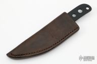 This boot knife by Bob Terzuola features a black blade with a notched thumbrest, .164" blade stock and 1.020" blade depth, full tang construction. Comes with a brown leather sheath by Lifter's Leather. Excellent condition. Comes with a zippered case.
