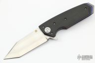 This prototype flipper features a satin finished clip point tanto blade with a flipper. The handle has G-10 scales, anodized titanium liners, stainless steel back-spacer and pommel, and a bead blast stainless steel clip, tip up carry. Marked "Prototype I" on blade. Excellent Condition.