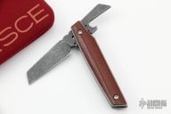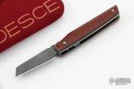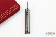 This 86 by Nick Swan features a tumbled blade with notched thumbrest, opens like a friction folder and has a double detent system. The handle has micarta scales, blasted titanium liners. Comes with a soft pouch. Excellent condition.