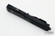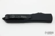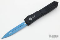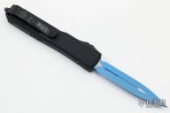 This Ultratech OTF automatic by Microtech features a D/E blue blade. Black aluminum contoured frame with black tip down stainless steel clip. Dated 04/2021 and s/n 5131. Excellent condition. Comes with original box.