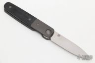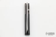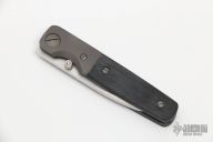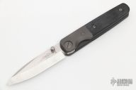 This Custom MV-2 by Emerson Knives features a chisel ground blade with knurled thumbstud and a swedge. The handle has bead blasted and dovetailed titanium bolsters, black G-10 scales and backspacer, bead blasted titanium liners. Nice detent, lockup and blade seating. Has a couple very light scuffs, otherwise excellent condition. Comes with original box and paperwork.