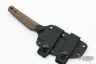 The light and thin design makes this a great knife for any slicing needs. The blade has a Tungsten Cerakote finish for corrosion and glare resistance, and added durability. The beveled and contoured G10 grips feature diagonal texturing for an aggressive but comfortable and secure grip. The Unmei comes with a molded kydex scabbard including two MAD straps that allow for scout carry (horizontal) and inside the waistband (IWB) vertical carry. The Unmei is MOLLE compatible and can also be attached to any pack, plate carrier or similar gear with PALS webbing.  The scabbard will work with most of the popular clips and mounts like the Discreet Carry Concepts Clip and UltiClip.