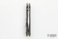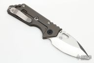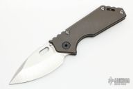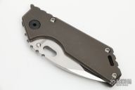 This 3/4 AR by Strider Knives features a stonewashed blade with notched thumbrest and thumbhole. The handle has a tumbled and anodized titanium frame with a stonewashed titanium tip up clip. Nice detent, lockup and blade seating. Excellent condition.