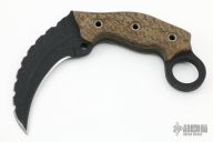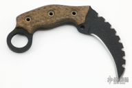 This War Boar by Busse features a black coated blade with serrated and sharpened top edge, .285" blade stock and 1.380" blade depth, full tang construction wit micarta scales. Excellent condition.