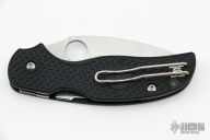 This C123PBK by Spyderco Knives features a satin finished blade with thumb hole. FRN scales, stainless steel liners and tip up (right or left reversible) black stainless steel clip. Includes the original box and papers. Excellent condition.