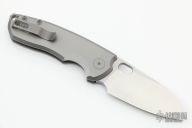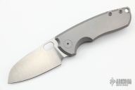 This F5.5 by Urban EDC features a satin finished sheepsfoot blade with thumbhole and notched thumb rest. The handle has a tumbled titanium frame with a matching tip up pocket clip. Includes the original box and papers. Excellent Condition.