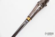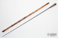 This antique sword cane by Alex Taylor features a carbon steel fluted blade. The cane is made from bamboo and the handle is carved and engraved sterling silver. The ferrule on the cane is engraved with "Francis Hendriks". Has some patina and scratches, but overall good condition for its age. NOTE: the closed length will refer to the length when the sword is sheathed in the cane. The overall length is just that of the sword and handle.