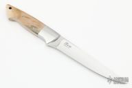 D'Alton Holder was born in Heald, Texas in 1940, was raised in Amarillo and graduated from West Texas State University with degrees in Fine Arts and English Literature. He retired early after 25 years with Diamond Shamrock Corp to become a full time knifemaker in 1988. He began making knives in 1968, joined the Knifemakers Guild in 1973 and was elected to the board in 1976, secretary/treasurer in 1978, President 1982, he served as Vice President 1984. Re-elected to board in 1988 and was elected President again in 1996. Received the Red Watson award in 1982. Named to the NSSF Hall of Fame in 1983. D'Alton is an avid horseman, hunter and fisherman. He prefers to work with natural handle materials and ATS-34. D'Alton has taught over 75 knifemakers, including people like Jim Hardenbrook and Bill Cheatham. Many of his knives are engraved by his wife, Pat Holder. Inducted into the Blade Magazine Cutlery Hall of Fame in 2003. D'Alton passed away in 2022.