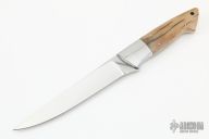 This knife by D'Alton Holder features a mirror polished blade with a tapered tang constuction.  The handle features steel bolster and mammoth ivory scales.  Includes the original brown leather sheath.  Light scratches are visible on the bolsters otherwise the knife is in excellent Condition.