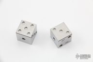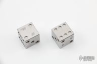 This pair of titanium dice are satin finished. They are stamped "UNDEAD DICE" and "D22 2007". They have scuffs, otherwise good condition.