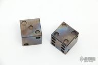 This pair of XL titanium dice are flame finished. They are stamped "D22" and "2011". Excellent condition.
