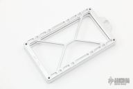 This Badge Holder by Dave Reynolds is made from two pieces of aluminum and are connected with four screws. The badge gets sandwiched between them. Has some light scratches, otherwise excellent condition. Dated 2008.