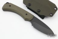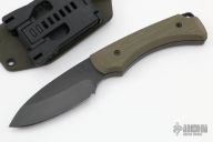 This Colonist by Medford Knife and Tool features a black PVD coated drop point blade and a hidden tang construction.  .230" Blade Stock.  1.319"Blade Depth.  The handle has green G-10 scales.  Includes a kydex sheath, padded zippered case and the original box.  Excellent Condition.