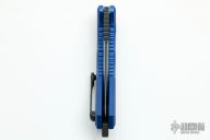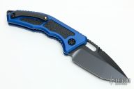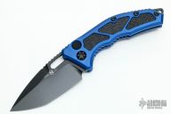 This Medusa by Heretic Knives features a black tanto blade with false top edge and notched thumbrest. The handle has a blue aluminum frame with checkered push button, black backspacer and a tip up stainless steel clip with ball. Comes with original box and drawstring bag. New from maker! Serial Number may differ from picture.