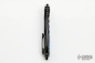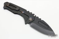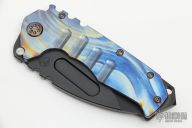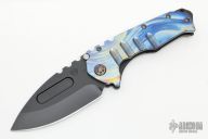 This Praetorian T features a black drop point blade with a notched thumbrest.  The handle features an anodized and PVD coated frame with a matching tip up pocket clip.  Black D2 backspacer.  Includes original box and papers.  Excellent Condition.