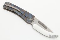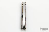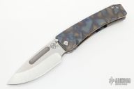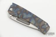 This Midi Marauder from Medford Knife and Tool features a stone wash finished drop point blade with fullers. The handle is comprised of a sculpted and anodized titanium frame with tip up clip. Excellent detent, lockup, and seating. Excellent condition. Comes with original box and papers.