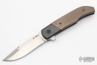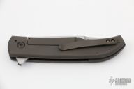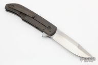 This Framehorn Flipper by David Sharp features a hand rub satin finished blade with a notched flipper. The handle has an orange peel finished zirconium front scale with a super conductor inlay, blasted and anodized titanium frame, carbon fiber backspacer, blasted and anodized titanium tip up clip. Nice detent, lockup and blade seating. Excellent Condition. Comes with a zippered case.