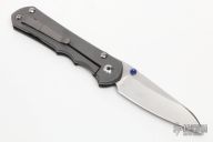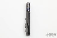 This large Sebenza 21 features a tumble finish blade and a bead blast titanium and carbon fiber frame. Bead blast titanium clip, tip up carry. Has blue thumbstud and barrel spacer. Includes original packaging and maker's card dated March 25, 2021. Excellent condition.