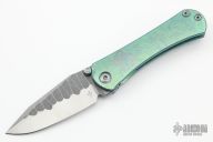 This SBDP by Borka Blades features a satin finished blade with Borka pattern flats, dual thumbstuds. The handle has a stonewashed and anodized titanium frame with a matching tip up clip. Nice detent, lockup and blade seating. Comes with zippered case, COA and HiTex Chip.  Excellent condition.