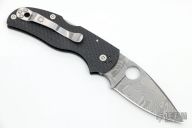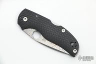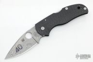 This 40th Anniversary Native by Spyderco features a Thor pattern Damasteel blade with thumbhole and notched thumbrest. The handle has a milled carbon fiber frame with a 4-way reversible stainless steel clip and stainless steel lock and backspacer. Comes with Spyderco zipper case and papers. Excellent condition.
