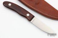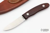 This Working Hunter by the late George Herron features a satin finish drop point blade .120" Blade Stock, .848" Blade Depth. Full tang construction with cocobolo handle. Comes with original leather sheath. Excellent condition.
