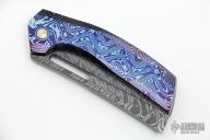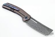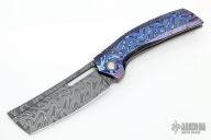 This Nakiri by Tuff Knives, features a Chad Nichols Boomerang Damascus blade.  The handle features a Nichols Mokuti "A" side, backspacer and tip up pocket clip.  The lockside of the knife is made of anodized titanium.  Includes a padded zippered case and COA.  Nice detent, lock up and blade seating.  Excellent Condition.
